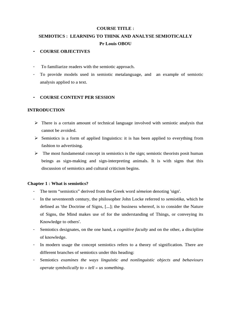 - Semiotic analysis begins with a study of the actual language and structures of
