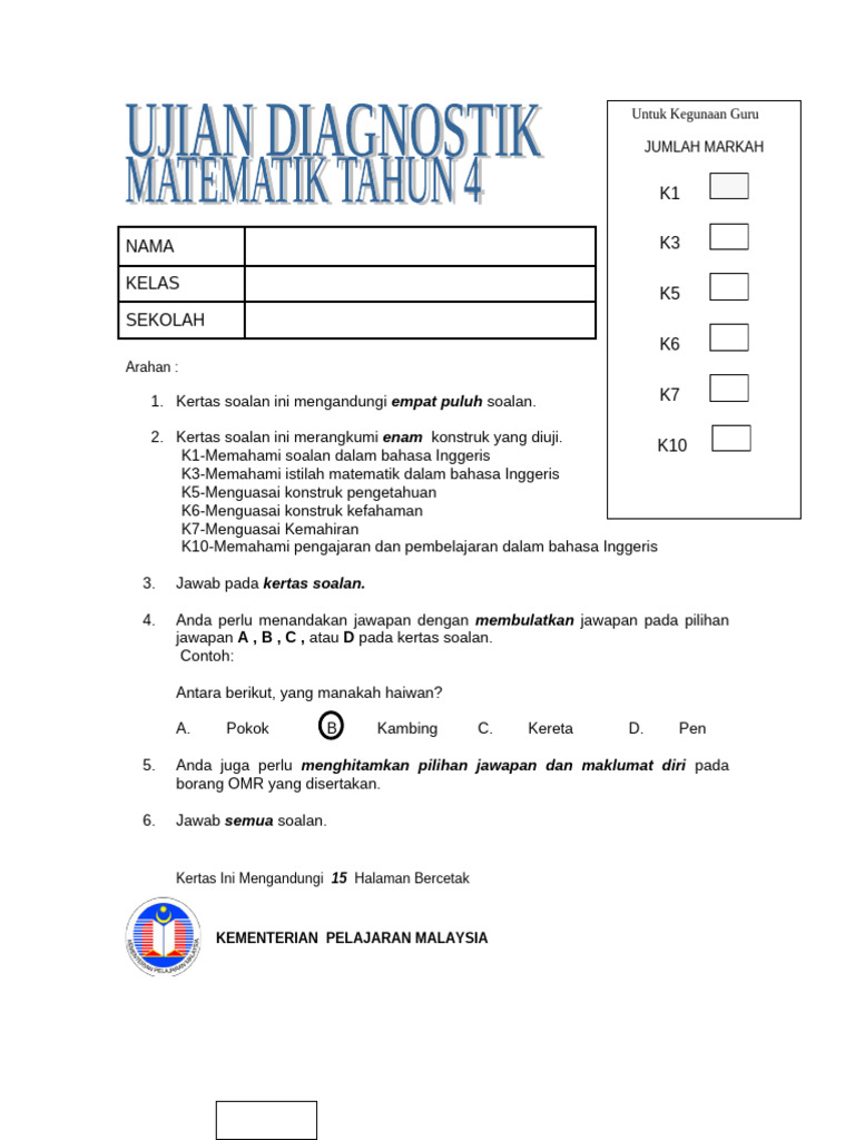 4. Anda perlu menandakan jawapan dengan membulatkan jawapan pada pilihan