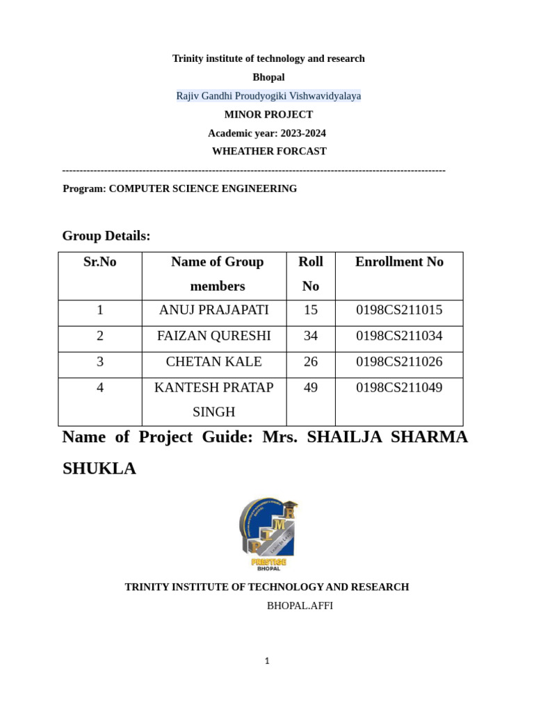 Place:BHOPAL, MADHYA PRADESH Enrollment No: