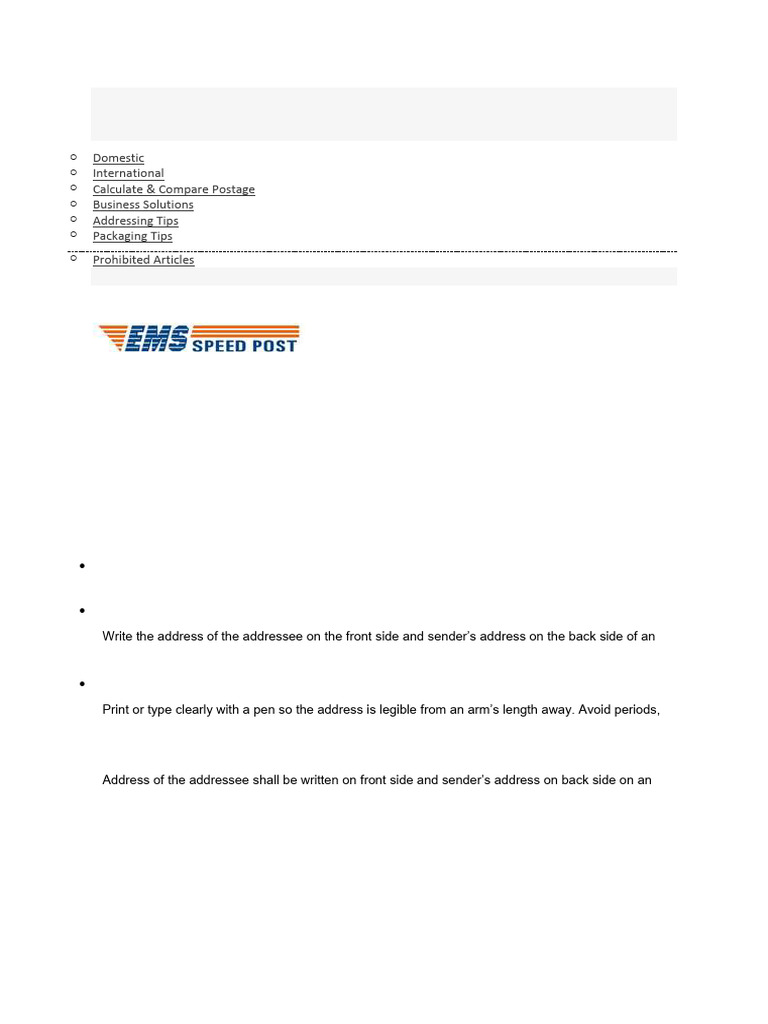 1. Address of the addressee shall be written on front side and sender’s address on back side on an