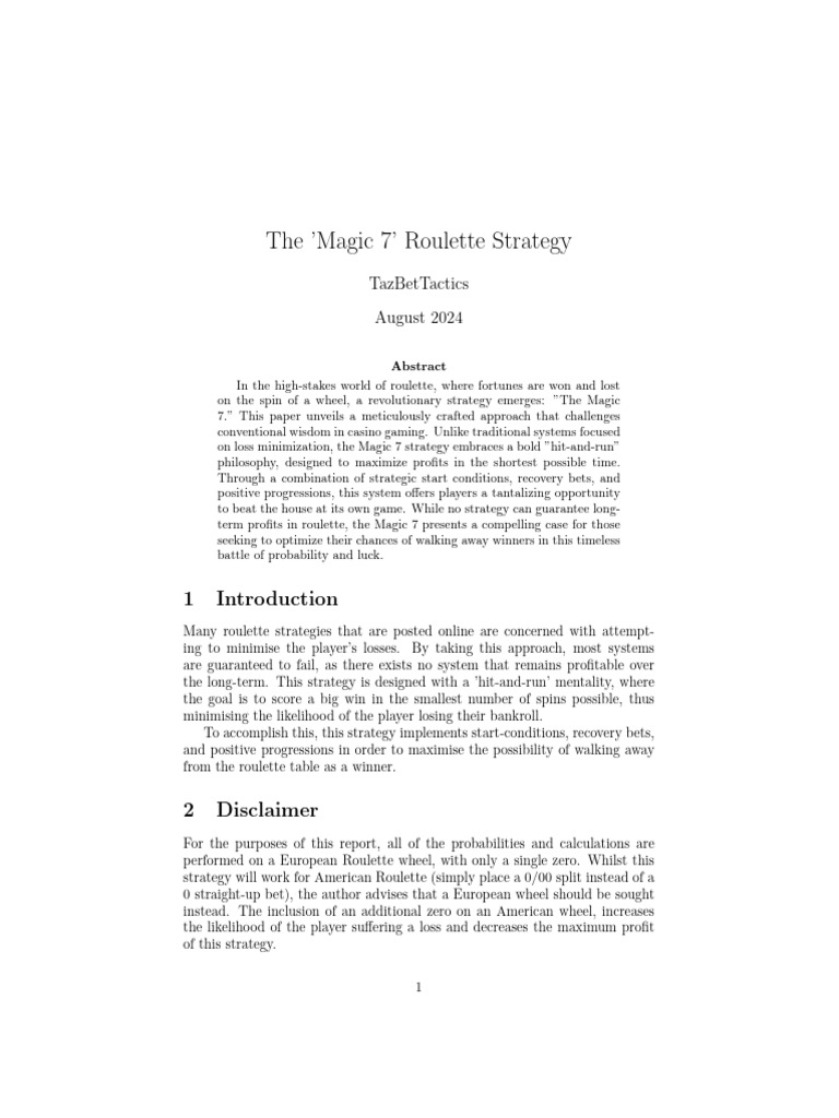 that no roulette strategy, including the Magic 7, can guarantee long-term prof-