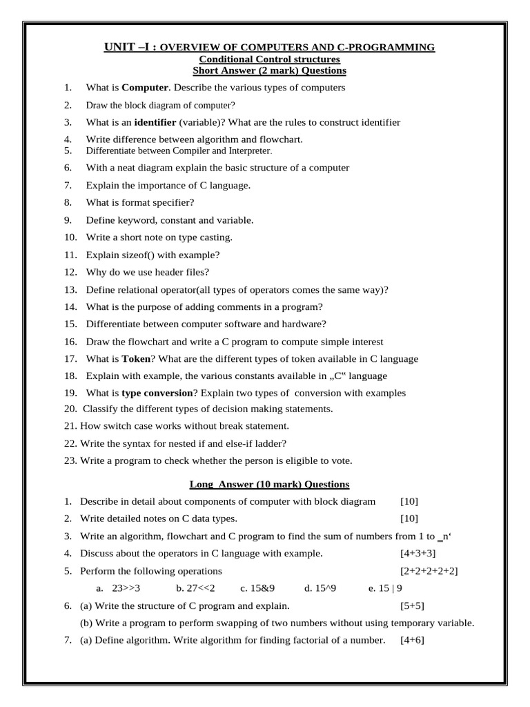 UNIT –I : OVERVIEW OF COMPUTERS AND C-PROGRAMMING