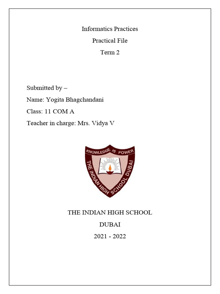 bonafide work of Yogita Bhagchandani of class 11 COM A
