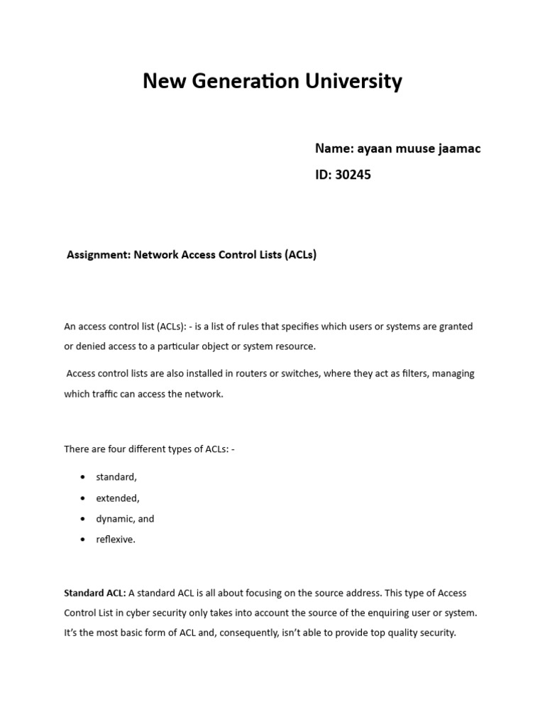 Assignment: Network Access Control Lists (ACLs)