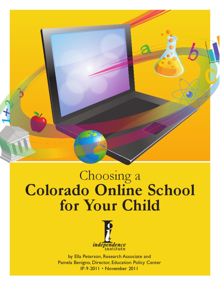 Parents may be required to provide transportation to testing locations for their child. Pamela Benigno, Public K-12 Education: Stop the Discrimination, Independence Institute Issue Backgrounder 1-2001, November 2001, http://education.i2i.org/2001/11/public-k-12-online-educationstop-the-discrimination/. 3 Senate Bill 07-215, Colo. Rev. Stat. 22-30.7. 4 Stefan Hrastinski, Asynchronous and Synchronous E-Learning, EDUCAUSE Quarterly, vol. 31, no. 4, (2008). 5 Michael B. Horn and Heather Staker, The Rise of K-12 Blended Learning, Innosight Institute, January 2011, http://www.innosightinstitute.org/innosight/wp-content/uploads/2011/01/The-Rise-of-K-12Blended-Learning.pdf 6 House Bill 04-1362, Colo. Rev. Stat. 22-30.5-501, 503. 7 Charles E. Dukes, Concurrent Enrollment Program Act , Colorado Department of Education, http://www.cde.state.co.us/SecondaryInitiatives/downloads/CE%20White%20background.pdf 8 Ibid. 9 SB 07-215, Colo. Rev. Stat.22-30.7-102. 10 Colorado Connections Academy, Enrollment FAQs, http://www.connectionsacademy.com/coloradoschool/FAQs/enrollment-faqs.aspx#4 11SB 07-215, Colo. Rev. Stat. 22-30.7-102. 12 Ibid. 13 Ibid. 14 SB 07-215, Colo. Rev. Stat. 22-30.7-102. 15 Colorado Department of Education, Frequently Asked Questions About Starting an Online Program, http://www.cde.state.co.us/onlinelearning/faq.htm 16 Ibid. 17 Hrastinski, Asynchronous and Synchronous E-Learning. 18 John Watson and Butch Gemin, Evergreen Education Group, and Marla Coffey, A Parents Guide to the Right Online Program, iNACOL: Promising Practices in Online Learning, February 2010, http://www.inacol.org/research/promisingpractices/iNACOL_ParentsGuide.pdf. 19 Information available at the Academy Online High School website, http://www.asd20.org/education/school/school.php?sectionid=3858. 20 Information available at the ACHIEVEk12 website, http://www.d11.org/Schools/Pages/AchieveK12.aspx. 21 J. Marie Sage, telephone interview by Pam Benigno, October 13, 2011. Information also available at the Boulder Universal website, http://bvsd.org/boulderuniversal/Pages/default.aspx. 22 Information available at the College Pathways website, http://collegepathways.org/. 23 Information available at the Colorado Calvert Academy website, http://coloradocalvertacademy.com/. 24 Information available at the DPS Online High School website, http://online.dpsk12.org/. 25 Information available at the Colorado Cyberschool website, http://edcsd.org/. 26 Pat Bershinsky, telephone interview by Ella Peterson, May 5, 2011. Further information available at the Edison School District 54JT website, http://edison54jt.schoolfusion.us/modules/cms/pages.phtml?pageid=220870&sessionid=107051c34e2f8afa 0314d346630b63c8&sessionid=107051c34e2f8afa0314d346630b63c8. 27 Information available at the Falcon Virtual Academy website, http://virtualacademy.falcon49.schoolfusion.us/?sessionid=d8c4d0629290b7e862ff7008eece9178&t.