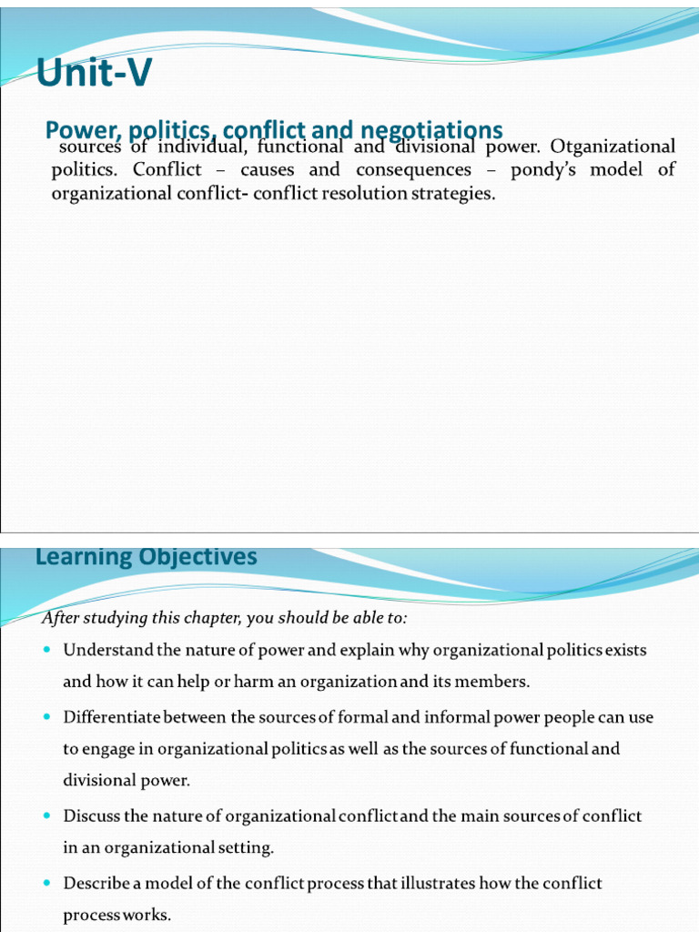 politics. Conflict - causes and consequences - pondy’s model of