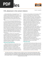 action which leads to better workability. Other products affect chemical reactions of cement hydration and may lead to faster setting or strength improvements in early and/or late age. The use of airentraining cement additives is normally used in masonry cements, where special application requirements are more easily achieved with high levels of entrained air in the fresh mortar mix. 2.5. Carbon Capture and Storage (CCS) According to different abatement scenarios and the International Energy Agency's recently published roadmap, the cement industry is expected to contribute to CO2 mitigation globally by a set of different measures among which CCS plays a key role. After 2020, a commercial application of CCS technologies is anticipated to be available at least in the OECD countries, but to a signicant extent also in countries like China and India. It is obvious that any pilot or even demonstration plant can only be initiated on the basis of sound facts and gures on the technical and economical feasibility. Against this background, ECRA, the European Cement Research Academy, has decided to look at the capture of carbon dioxide as a prerequisite for a safe geological storage of CO2 [7]. ECRA's goal is to examine the technical and economical feasibility of this technology as a potential application in the cement industry. ECRA puts a strong emphasis on the global perspective of its research and also its sustainability aspect. This implies that not only CO2 emissions as such, but also the huge energy demand for operating CCS plants will be taken into account. Besides technical aspects, the economic framework will be decisive for future applications of carbon capture in the cement industry. At the moment, the costs for CO2 capture are estimated to amount to 20 to 50/ t CO2. This does not include additional costs for transport and storage of CO2. Furthermore it does not include costs for the potential retrot of existing cement technology including necessary switches in fuels and raw materials. The wide range represents the very different values given in the literature for the individual technologies. Based on avoided CO2 emissions, the cost estimates range from 24 to 75 /t CO2. These costs are higher since more CO2 emissions occur in plants with CO2 capture due to their reduced overall efciency than in a reference plant without CO2 capture. All presently available capture technologies are far from being applicable to the cement industry due to technical and economic reasons. However, some capture technologies seem to be more appropriate for the potential application at cement kilns than others [8,38]. Oxy-fuel technology relies on oxygen instead of ambient air for combustion, i.e. the nitrogen is removed from the air in a separation plant, prior to being applied to the kiln. Consequently, the concentration of carbon dioxide in ue gas is increased signicantly and for CO2capture only a comparatively simple carbon dioxide purication is required, if any. To introduce oxy-fuel technology with ue gas recirculation into an existing cement plant is extremely challenging. To prevent air intrusion, the complete plant has to be sealed or has to be operated with excess pressure. An air separation plant has to be established on the cement plant premises and the equipment for ue gas recirculation has to be included into the existing plant units. The different ue gas enthalpies and ows require a different design of all plant units. Hence the implementation of oxy-fuel technology with ue gas recirculation seems to be predominantly an option for new plants. Post-combustion capture does not require fundamental changes in the clinker burning process. Therefore this technology would be available not only for new kilns, but also for retrots at existing cement kilns. The most promising post-combustion technology is chemical absorption because operational experiences exist in several industries, and high abatement efciencies seem to be achievable. Membrane technology also seems to be a candidate for future application at cement kilns. Other post-combustion measures, e.g. physical absorption or