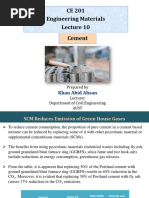 related to substantial fuel consumption and the calcination of limestone. Fig. 6 illustrates how the proportions of OPC declined over time in relation to the cements with other major constituents. Holcim achieved in 2010 an average specic CO2 emission per ton of cement which was 20% lower compared to 1990. 3.1. Cements with several main constituents The reduction of specic CO2 was not the only driver for the fast development in the production of cements with several main constituents; the use of granulated blast furnace slag, y ash from coal power plants and natural pozzolans also offer additional benets in cement performance. The nature of these mineral constituents varies considerably, and therefore the substitution of clinker is always limited up to a certain degree. Slag is latently hydraulic and is often used in proportions of more than 50% of the cement. Pozzolanic materials like y ash and natural or synthetic pozzolans can be used to levels of up to 40%. Limestone is not strongly involved in chemical reactions during cement hydration but has a positive impact on the physical characteristics of cement. Also, in the case of y ash, the particle shape plays an important role. Due to its spherical shape, it has a positive impact on the rheological property of cement applications. The so called clinker factor (CF) is the proportion of clinker in cement. It can be derived for every cement product, but it is mainly used as an indicator of the average clinker substitution of a producer, an area or worldwide. In 2003, the world average CF was 0.85 [16]. The continent with minimum CF was South America (0.75), while North America was the region with the highest CF of 0.92. The clinker factor in an area is affected by the type and volume availability of clinker substitutes, the cement standards, and also by the cement market itself. In 2010, the world CF was 0.77 and the long term prediction of the Cement Technology Roadmap 2009 is 0.71. 3.2. Challenges in the application of cements with several main constituents In practice, the substitution of clinker in cements affects the characteristics of strength development over time. Most important is the fact that the strength development is slower compared to a purely clinker-based cement of the same neness. Because the vast majority of cement applications require a certain strength of the nished product after a couple of hours or a few days, the industry is using different strategies to overcome this problem. The reactivity of clinker depends on the clinker phase assemblage and the reactivity of the individual phases. Maximum clinker reactivity requires full process control and optimized conditions from raw materials through fuels down to clinker storage. Another way to