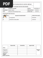 1.0 APPROVAL SHEET Approval Sheet contains particulars about the Names of persons with designations and signature with date and nature of work performed for preparing this document. User of this document should prepare the Table and incorporate in this section. 2.0 Introduction: Medicinal products can be contaminated by other medicinal products, by cleaning agents, by microorganisms or by other material (e.g. Air borne particles, dust, lubricants, raw materials, intermediates, auxiliaries. In many cases, the same equipment may be used for processing different products. To avoid contamination of medicinal products, adequate and validated cleaning procedures are essential. 3.0 Unit Operation: Cleaning of Equipment. 4.0 Objective: To ensure that the Cleaning Procedure as detailed in the SOP is effective and removes all residues up to a predetermined acceptance level, and that there is no possibility of any resultant cross contamination. 5.0 Site of the Study : Production Department. 6.0 Validation Team: Representatives from : Production Quality Assurance Quality Control Engineering Individuals name to be entered in the report. 7.0 Description of the Equipment to be cleaned: All equipments used in the manufacturing of Tablet and Capsule: Details of the machine like Machine name and Code No. of Equipment/s to be entered in the report. 8.0 Standard Operating Procedure (SOP) for Cleaning of Equipment: SOP applicable to the cleaning of equipment: SOP No. To be recorded in the report. 9.0 Control: 9.1 Absence of traces of Active Ingredient and cleaning agent in swab/Rinse by validated analytical method. 9.2 Determination of bioburden (Microbiological Contamination) 9.3 Analytical method validation for cleaning validation shall be done. It should include analytical performance parameters like limit of detection and recovery of swab samples. 9.4 SOP for taking swab: SOP No. to be entered in the report. 10.0 Experimental Details: 10.1 Clean the equipment as per the SOP. 10.2 Collect the Swab / Rinse individually various parts as per the sampling plan.