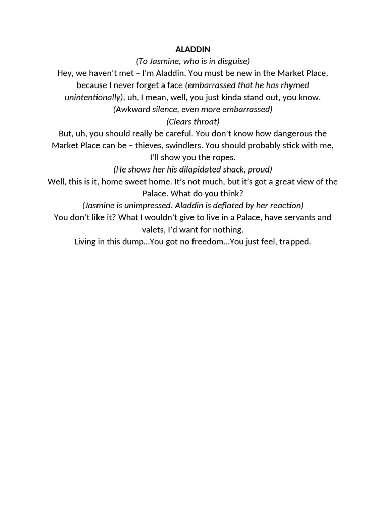 (Jasmine is unimpressed. Aladdin is deflated by her reaction)