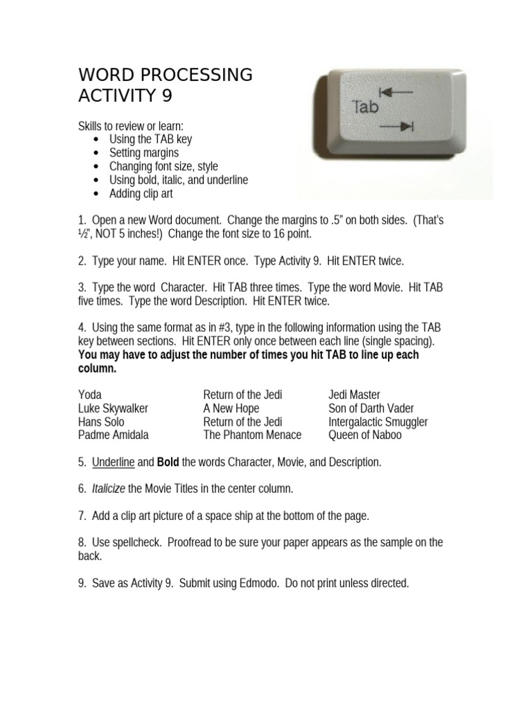 9. Save as Activity 9. Submit using Edmodo. Do not print unless directed.