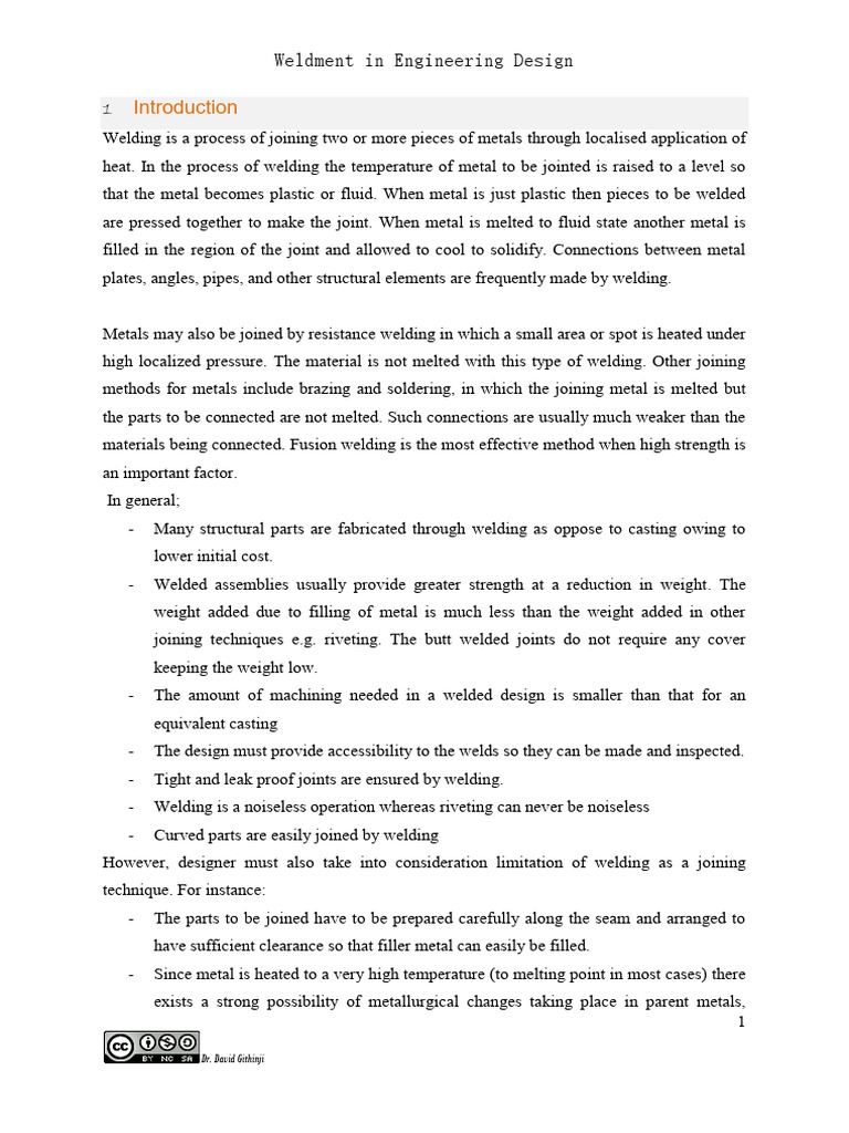 - Many structural parts are fabricated through welding as oppose to casting owing to