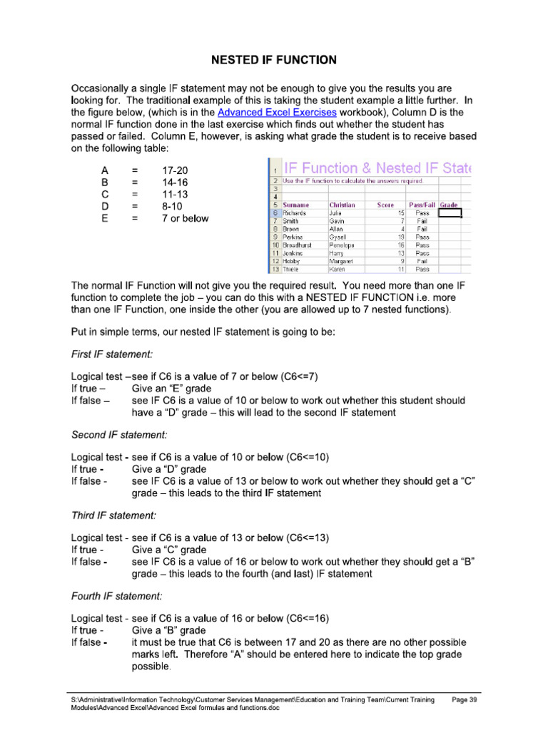 passed or failed. Column E, however, is asking what grade the student is to receive based