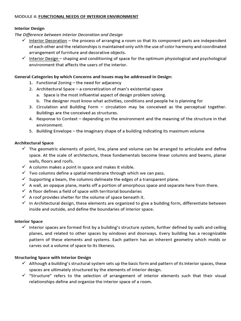 MODULE 4: FUNCTIONAL NEEDS OF INTERIOR ENVIRONMENT