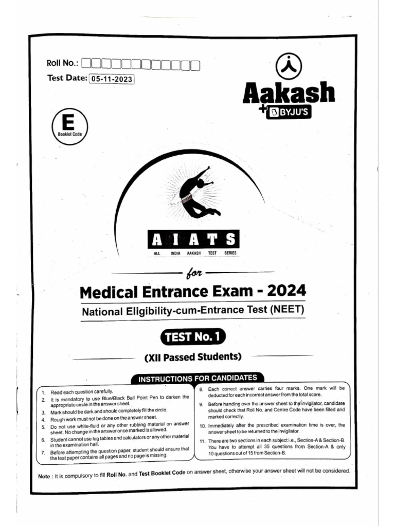 Note itis compulsory to fil Roll No. and Test Booklet Code on answer sheet, chenvse your answer sheet wil not be consideredTOPICS OF THE TE
