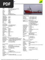 Depth Moulded: 4.7m Summer Draft: 4.2m Gross Tonnage: 986 Deadweight: 1100mt approx. Classification: Lloyds LSA: 42 personnel MACHINERY : Main Engines: Two per shaft. Daihatsu Diesel type 8PSHTCM26D each delivering 1050 BHP @750rpm, total 4200 BHP Gear Box: Daihatsu two into one reverse reduction type DRD-17D, ratio 3.22:1 Propeller: Mikado Fixed pitch in fixed kort nozzles Generators: Two units Caterpillar d246 coupled to Kato 250KW brushless alternators, 415/240VAC at 50 Hz, 3phase Harbour Generator: Caterpillar D3306 coupled to