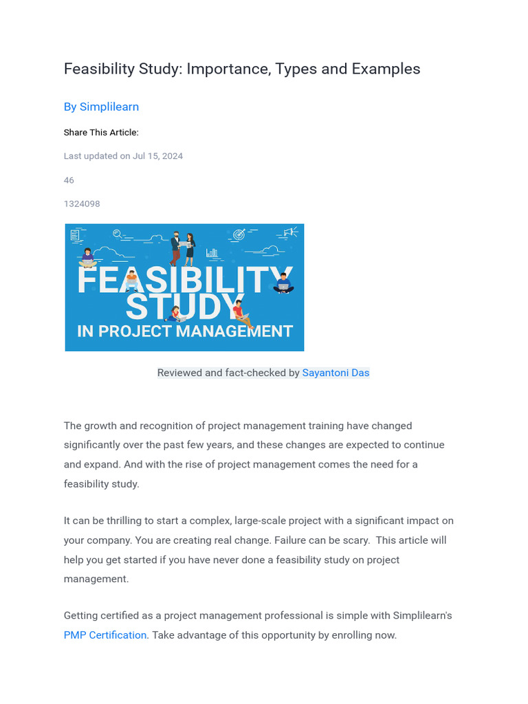 budget. Without a feasibility study, it cannot be easy to know whether or not a