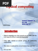 Optical computing means performing computations, operations, storage and transmission of data using light. Instead of silicon chips optical computer uses organic polymers like phthalocyanine and polydiacetylene.Optical technology promises massive upgrades in the efficiency and speed of computers, as well as significant shrinkage in their size and cost. An optical desktop computer is capable of processing data up to 1, 00,000 times faster than current models.