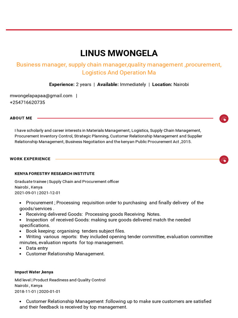 Experience: 2 years | Available: Immediately | Location: Nairobi