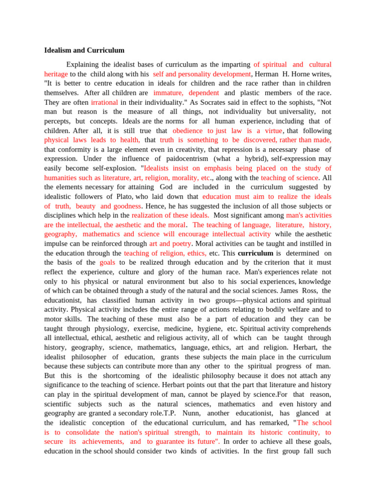 Idealism and Curriculum