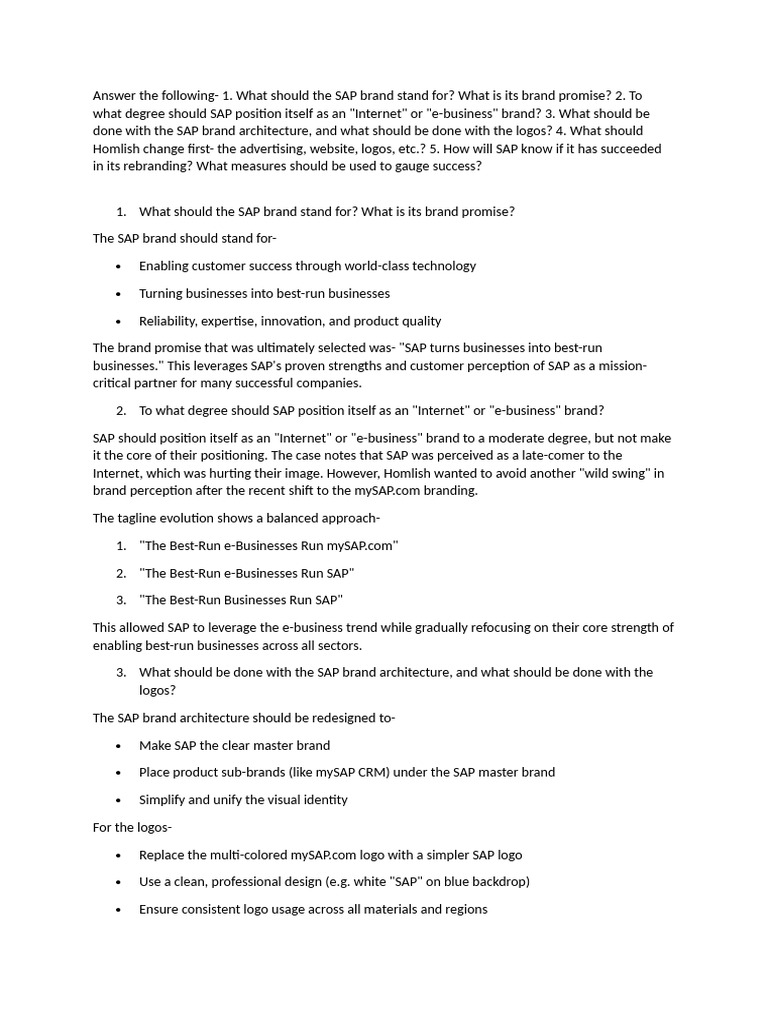 Homlish change first- the advertising, website, logos, etc.? 5. How will SAP know if it has succeeded