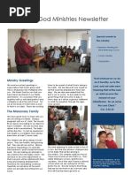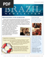 We see that the gospel is spreading fast in Brazil, but as a new church many What kind of material would we teach? lack a strong vision for their own As we prayed and talked it through with families. different pastors, we were encouraged As a result, most of drug addicts, that we did have something to give and prostitutes, transvestites and drug as we prayed we felt that this open dealers as well as homeless people door was from the Lord. weve met or ministered to are children of Christian families! So we spend a great amount of time seeking the Lord, studying the Word and inteviewing families to prepare the material. Finally we were there, teaching a three session seminar on parenting. There were a nearly 60 people and the pastor said, To my surprise, they all stayed till the end! So our hearts feel the heavy burden for families and even without speaking about it, the Lord has brought many to our door to minister to in this area. Besides the Seminar, weve had small chances to speak to couples that come to our house, as well as at a meeting for young married couples.