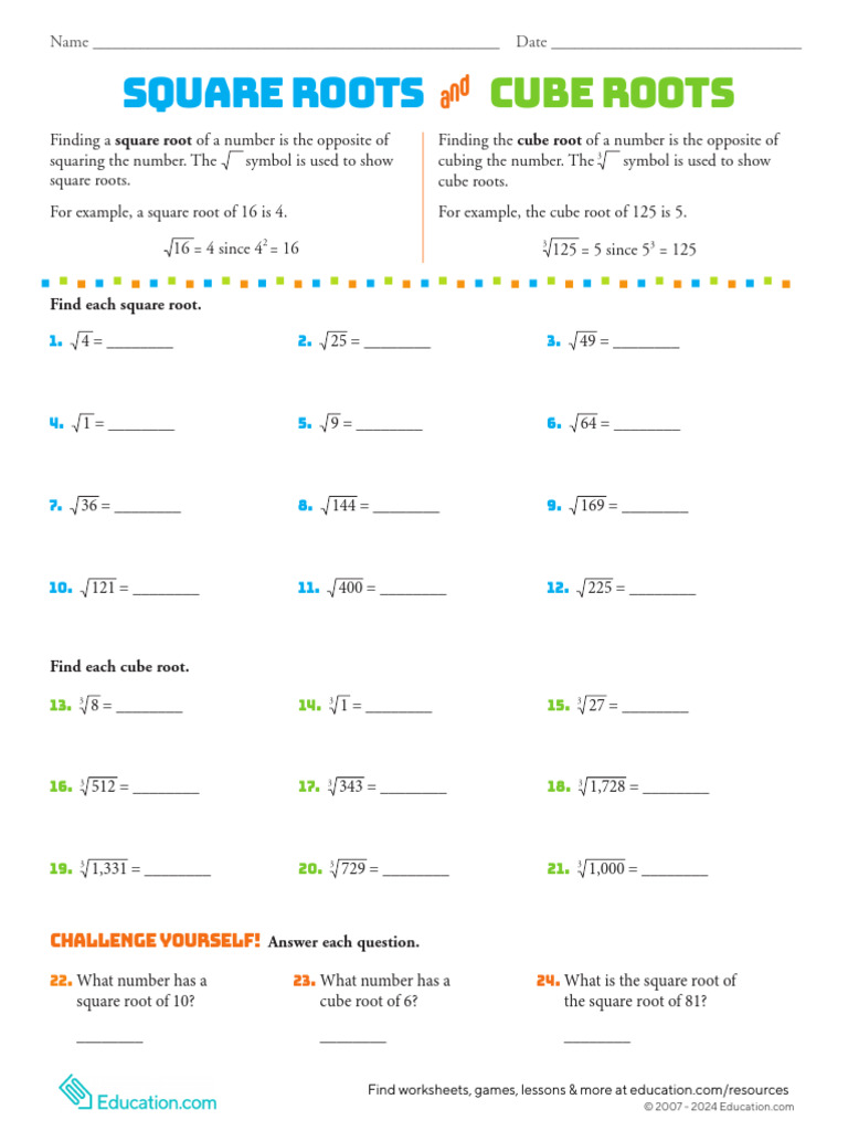 Square Roots and Cube Roots