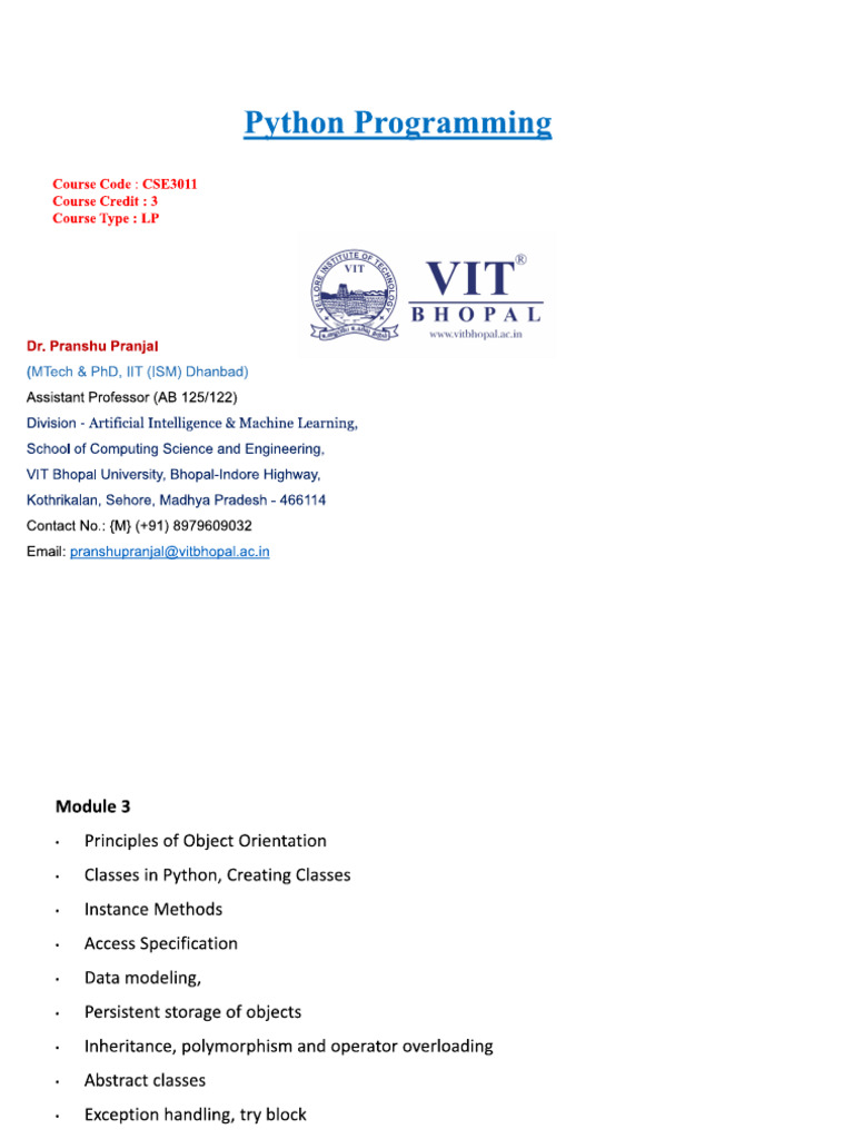 Email: pranshupranjal@vitbhopal.ac.inModule 3