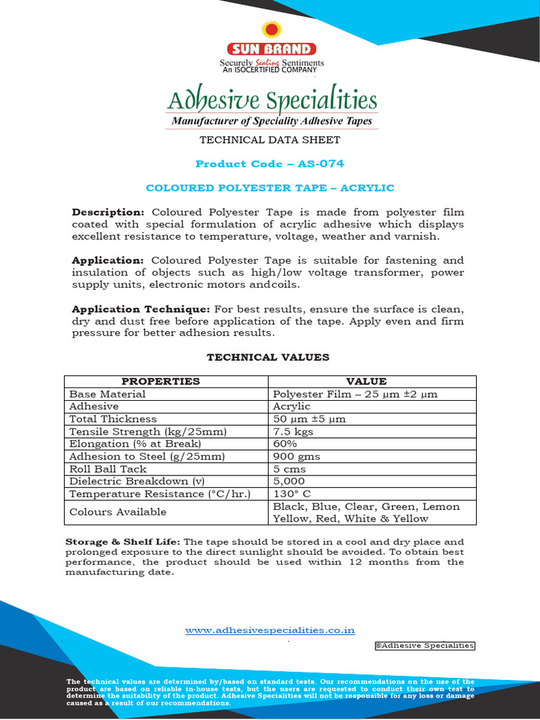Storage & Shelf Life: The tape should be stored in a cool and dry place and