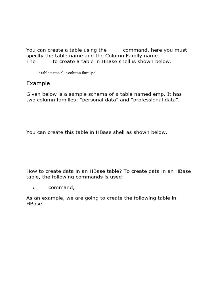 hbase(main):002:0> create 'emp', 'personal data', 'professional data'