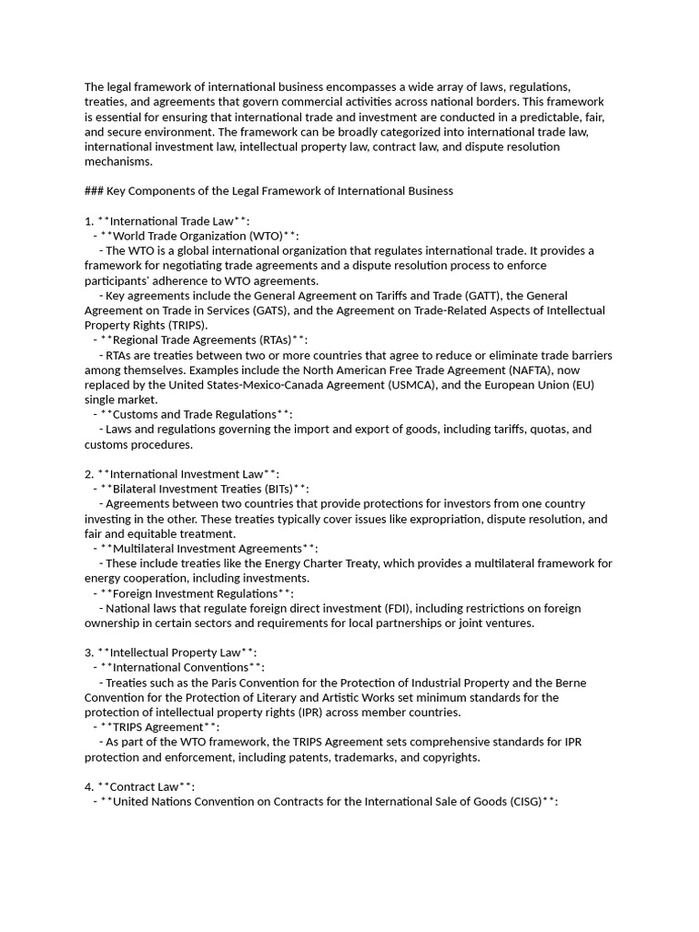 treaties, and agreements that govern commercial activities across national borders. This framework