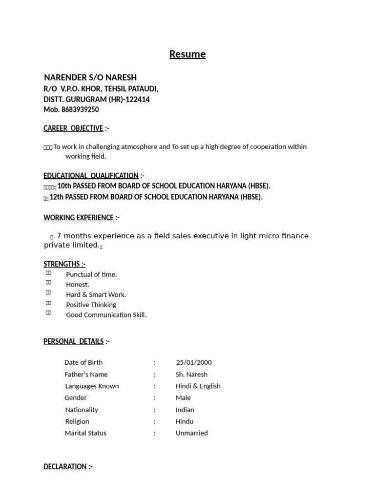 12th PASSED FROM BOARD OF SCHOOL EDUCATION HARYANA (HBSE).