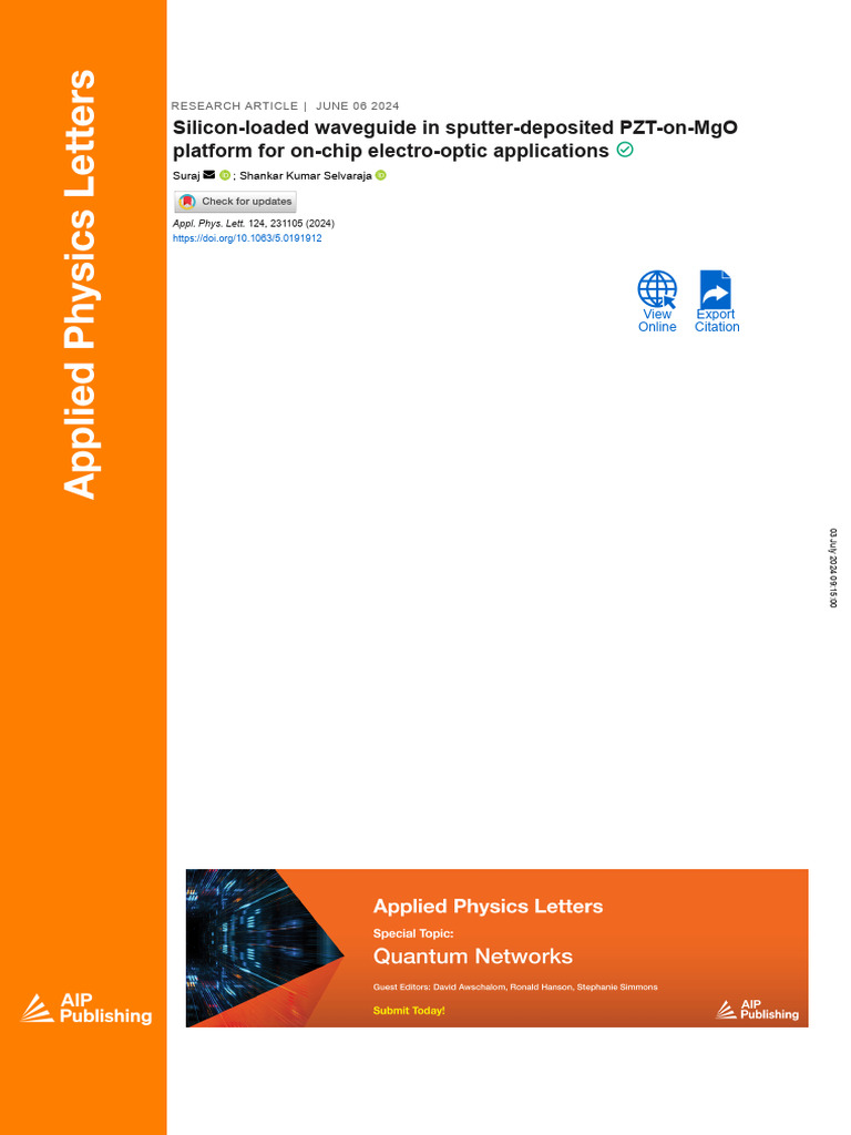 Suraj, S. Rathkanthiwar, D. Nath, S. Raghavan, and S. K. Selvaraja, “GaN-on-