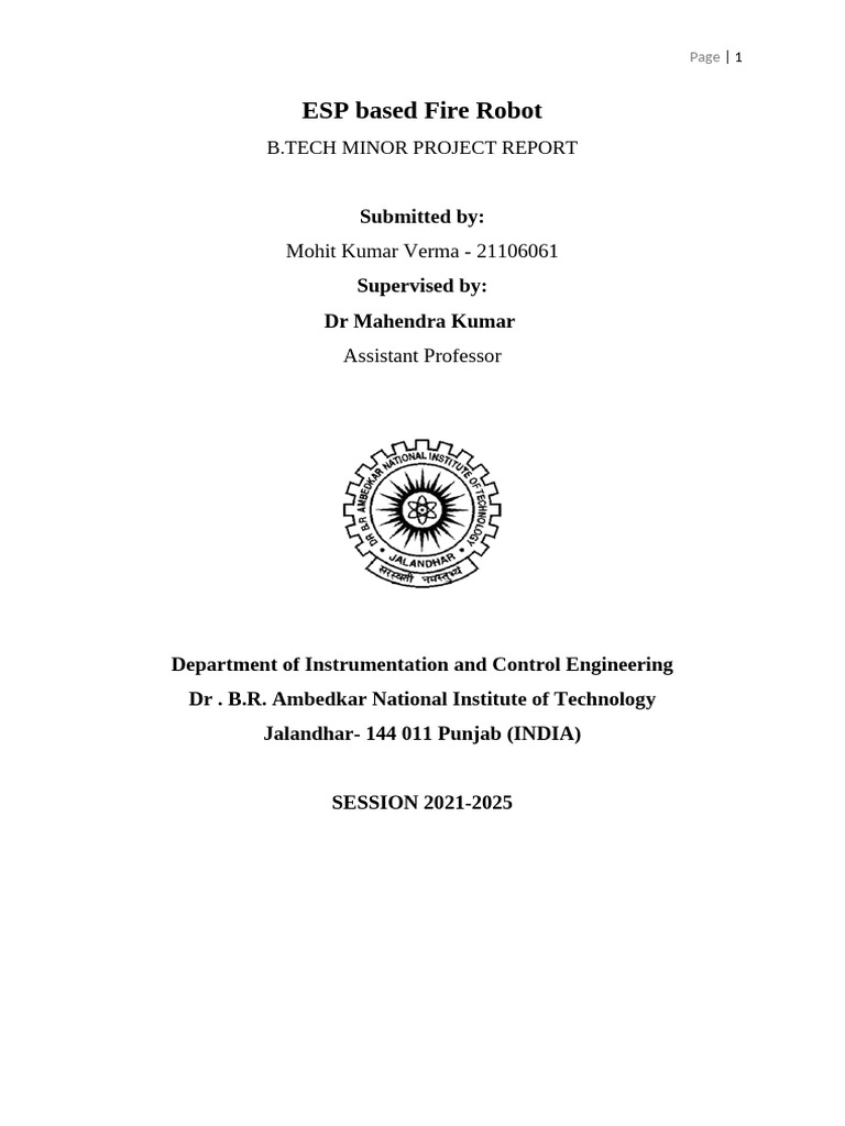 This is to certify that the report on the proposed B. Tech Minor project titled "ESP-based Fire