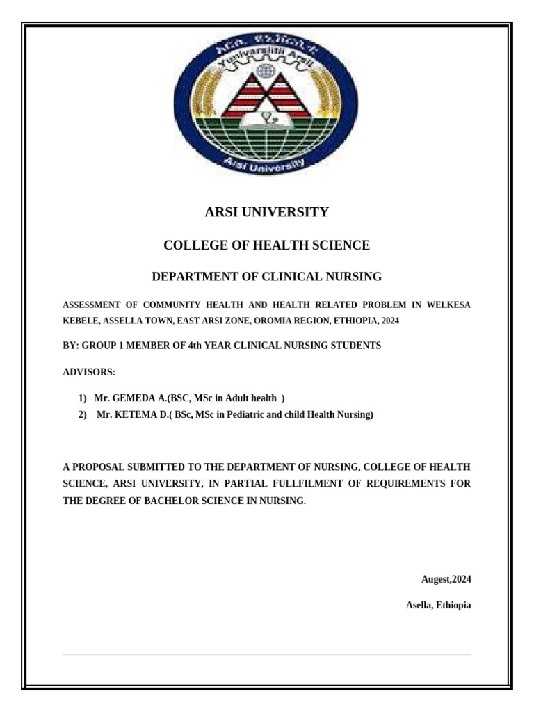 related problem in welkesa kebele, Assella town, East Arsi Zone, Oromia Region, Ethiopia. 2024..........22