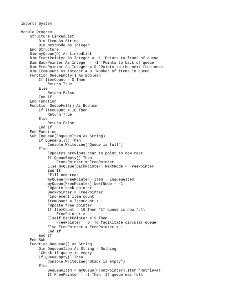 Dim BackPointer As Integer = -1 'Points to back of queue