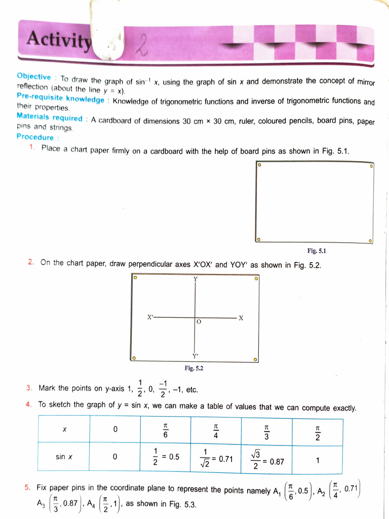 12. Join the pins on both sides of the line y = x by a string tightly to obtain the graph of y= sin'x.