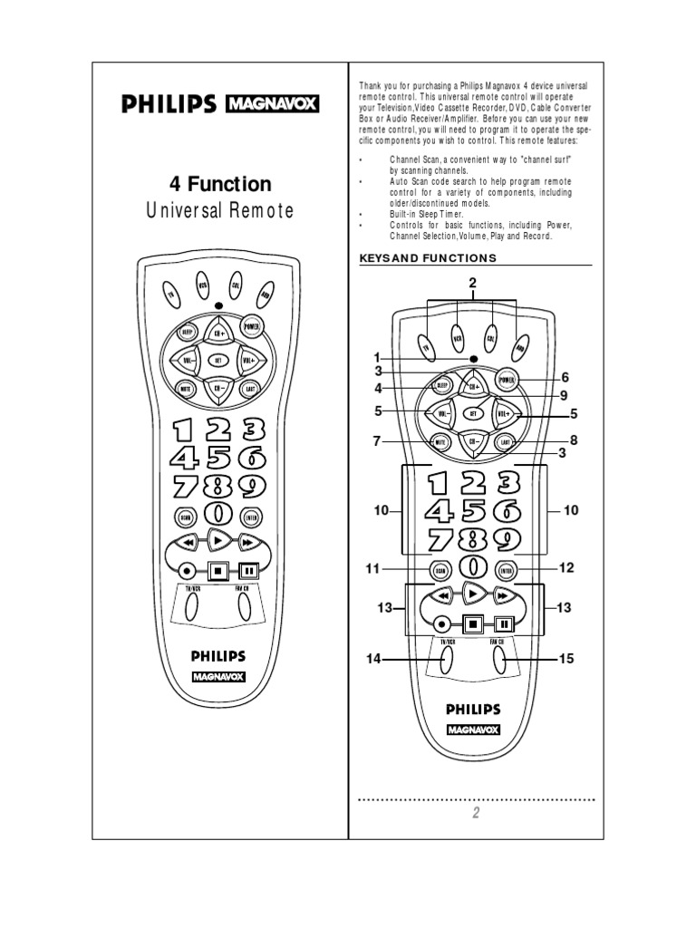 Thank you for purchasing a Philips Magnavox 4 device universal remote control.