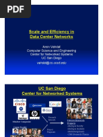 For fair comparison, we assume the four structures support in data centers and use the same the same number of servers type of switches ( ports). FiConn, DCell, and BCube are all recursively dened structures, and we denote the levels of them . as , , and , respectively. Typically, there is First, we study the scalability of the four structures. All these structures can scale to large server population. However, only FiConn can scale without adding server ports or switch ports. On the other hand, DCell and BCube scale with more server ports, while the scalability of Fat-Tree is limited by the number of switch ports given three layers of switches. Hence, FiConn can scale to large data center with less deploying efforts than the other three structures. Second, we consider the number of switches and links required to support a certain number of servers. These numbers not only determine the cost of data-center networking, but also reect the wiring efforts in deploying data center. We can nd that FiConn and DCell both use the same number of switches, only one-fth the number in Fat-Tree. The number of switches used in BCube depends on the number of levels, but typically more than FiConn and DCell, while less than Fat-Tree. In addition, FiConn beats all other three structures in the number of links. As a result, FiConn has the lowest deploying cost and wiring effort among all these structures. Third, we analyze the one-to-one throughput and all-to-all throughput, respectively, both of which are important performance metrics in data-center networking. Assume the link bandwidth is 1. The maximum one-to-one throughput is just the number of server ports. FiConn is twice that of Fat-Tree, but and are typically less than DCell and BCube (note that larger than 2). For all-to-all throughput, Fat-Tree and BCube perform best, and FiConn is a little worse than DCell. This is not strange because FiConn uses less switches, less links, or less ports than the other three structures. However, in a large-scale data center, it is unlikely that all servers participate in all-to-all communication. Therefore, we argue that the merit of FiConn on low cost and easy deployment outweighs the downside on all-to-all throughput. VII. DISCUSSIONS In this section, we make more discussions on the design of FiConn. Packaging and Wiring: The packaging of servers and switches in FiConn depends on the number of switch ports, . Take a typical value of as an example. We can put the 48 servers under the same switch as well as the switch itself into a rack. The intrarack wiring is easy to complete. The FiConn has 25 racks, which can be put into two columns. The level-1 links between servers are paced on the top of racks. It is relatively challenging for wiring when deploying FiConn since a complete FiConn with contains 361 200 servers. Long-distance bers can be used in this case to solve the problem. Also note that the number of links required in FiConn is much less than DCell, Fat-Tree, and BCube, as elaborated in Section VI. Extension to More Server Ports: In FiConn, we assume that all servers have two built-in NIC ports. However, the innovation on server hardware is fast, and servers with four embedded NIC