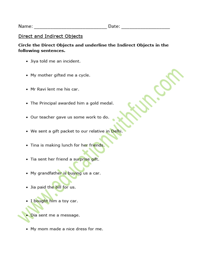 Direct and Indirect Objects