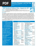 12050 E. North Avenue Sanger, CA 93657 Masses/Misas: Espaol Domingo 8:30 am y 1 pm English Sunday 10:30 am Bilingual Sunday 5:00 pm