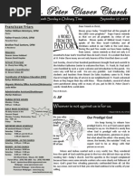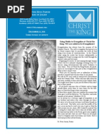 relaciones humanas, especialmente en los das festivos y nada arruina una buena fiesta como los pleitos y los rencores. Por eso durante la poca navidea hagamos todo lo posible por corregir errores cometidos durante el ao con amigos y parientes. Muchas veces estas faltas son imposibles de arreglar, por lo cual Dios nos aconseja el perdn y la reconciliacin. Una parbola latinoamericana narra que la "poinsettia," o flor de pascua, con sus bellas hojas verdes y rojas nace del regalo que un pobre chiquillo le hizo al nio Dios. Mientras otros le daban oro y joyas el muchachito no tena ms que una hierbita. Este don agrad al Nio Dios quien lo transform en la flor de Navidad. El perdonar puede ser amargo como una hierba, pero es el don que agrada ms al Niito Jess quien lo transforma en reconciliacin. Al buscar la reconciliacin imitemos al Dios recin nacido, quien busca la armona con la humanidad. --Fray Gilberto Cavazos-Glz, OFM IMMACULATE HEART RADIO December 27-30, 2011 6:00 am to 6:00 pm IHRs year-end Pledge Drive is fast approaching and for the first time in their history, they have been offered a $1,000,000 matching grant challenge. For every dollar you give prior to December 31, 2011, an anonymous donor will match your donation on a dollarfor-dollar basis, up to a grand total of one million dollars! ***LIVE*** For days of testimonies and interviews, plus exciting prize giveaways and so much more. Tune in