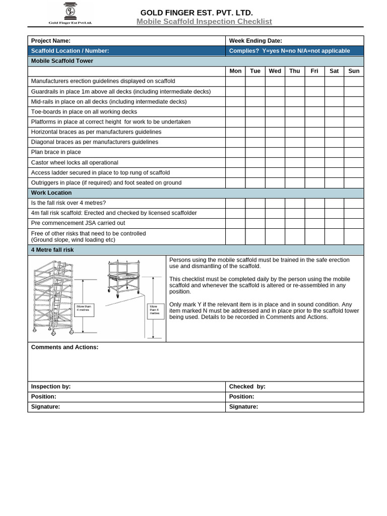 Mobile Scaffold Inspection Checklist