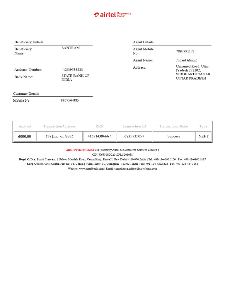 6000.00 1% (Inc. of GST) 415714396667 6835735057 Success NEFT