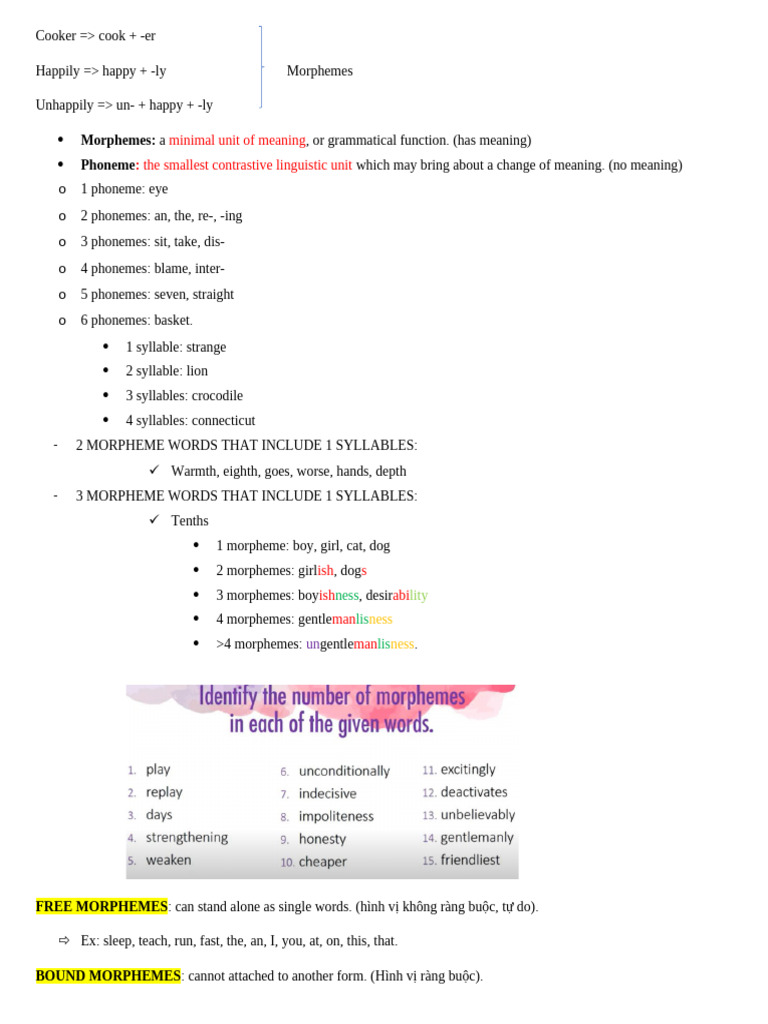 BOUND MORPHEMES: cannot attached to another form. (Hình vị ràng buộc).
