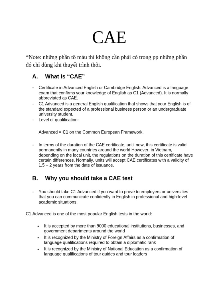 certain differences. Normally, units will accept CAE certificates with a validity of