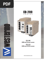 Electromagnetic Compatibility Phenomena Test ESD EN 61000-4-2 RF field AM modulated Fast transient Surge IEC 61000-4-3 EN 61000-4-4 EN 61000-4-5 Description Enclosure contact Enclosure air Enclosure Signal ports Power ports Signal ports unbalanced Signal ports balanced Power ports Signal ports Power ports AC power ports Test levels 6 kV 8 kV 20 V/m 80% AM (1 kHz), 80 2 700 MHz 2 kV 2 kV 2 kV line to earth, 2 kV line to line 2 kV line to earth, 1 kV line to line 2 kV line to earth, 2 kV line to line 10 V 80% AM (1 kHz), 0.15 80 MHz 10 V 80% AM (1 kHz), 0.15 80 MHz 10 & 5 000 ms, interruption 10 & 500 ms, 30% reduction 100 & 1 000 ms, 60% reduction 100 V 50 Hz line to earth 250 V 50 Hz line to line 10 & 100 ms, interruption 10 ms, 30% reduction 10 ms, 60% reduction +20% above & 20% below rated voltage Class A Class A Class B Class B Class B 2 kVrms 50 Hz 1 min 3 kVrms 50 Hz 1 min 2 kVrms 50 Hz 1 min (@ rated power <60 V) 40 to +70C 40 to +70C 5 to 95% relative humidity. 5 to 95% relative humidity. 2 000 m / 70 kPa 676000 h @ 25C 10 year 20 x 100 x 175 mm 0.14 kg IP 20 Convection RV07B 19 rack