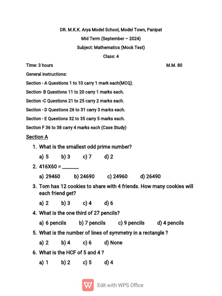 Subject: Mathematics (Mock Test)
