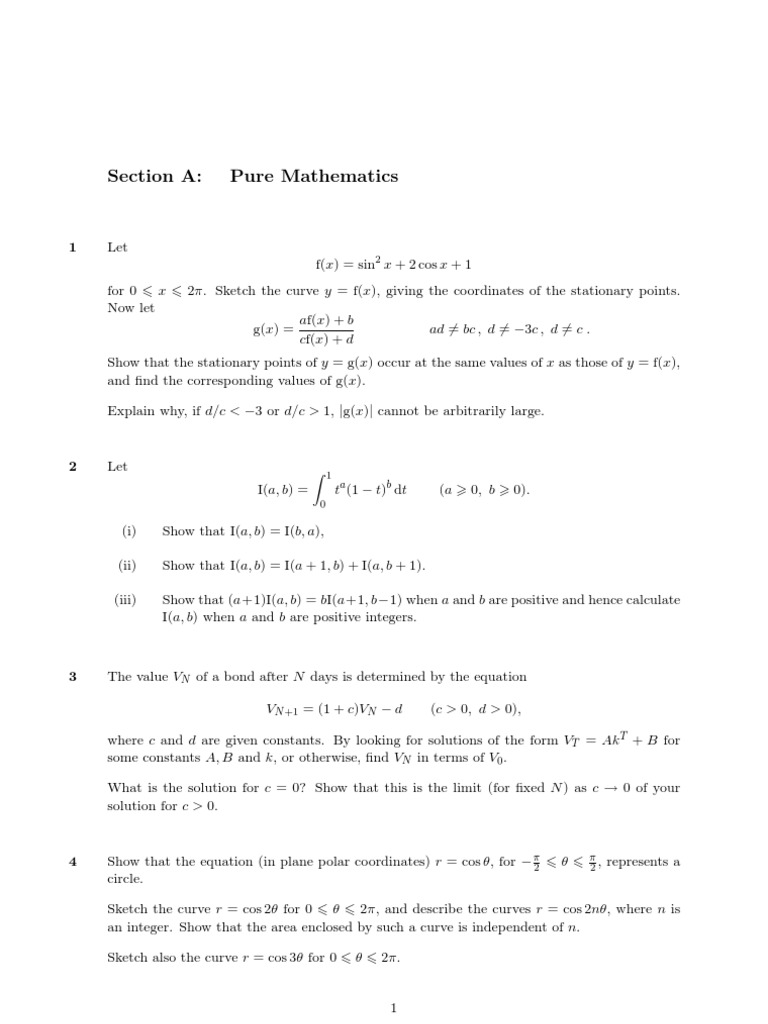 where T is a positive constant. Show that b(x) has a single turning point in 0 < x < . By considering the behaviour for small x and for large x, sketch b(x) for 0 x < . Let