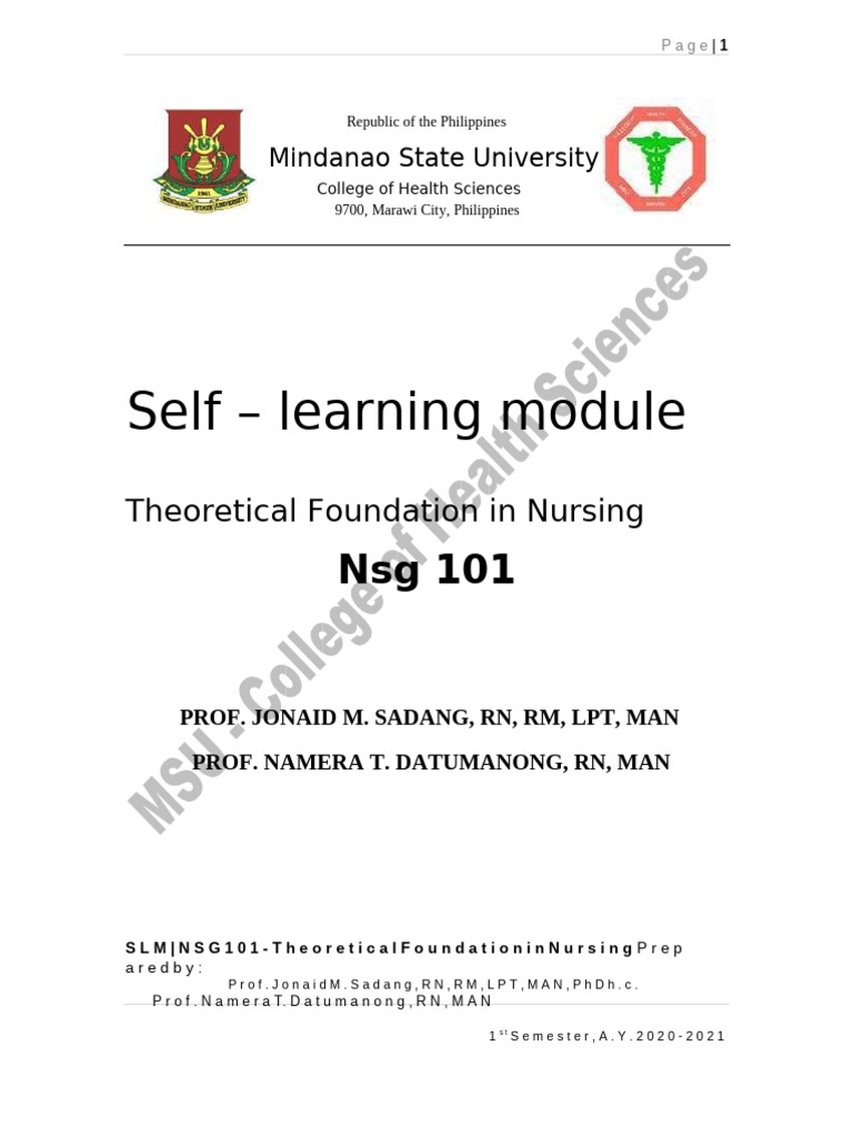 SLM|NSG101-TheoreticalFoundationinNursingPrep